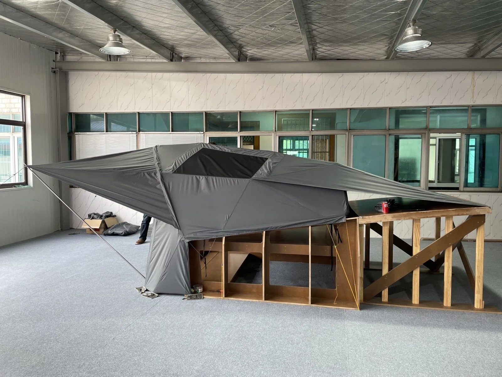 This involved designing and developing the inflatable air beam frame and construction of the flysheet and inner tent, including doors, windows and pockets. Additionally, we conceptualized a foldable platform that was combined with the tent to streamline the setup process, making it as quick and effortless as possible.